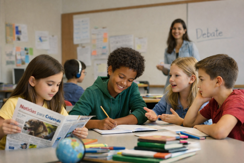 Na escola, esse mesmo material pode ganhar outra densidade. Uma notícia mediada, contextualizada e escrita para crianças e jovens não é ruído, é ponto de partida: para leitura, debate, projetos, escrita, pesquisa e conexões entre diferentes áreas do conhecimento. É quando o jornalismo infantojuvenil encontra a sala de aula.